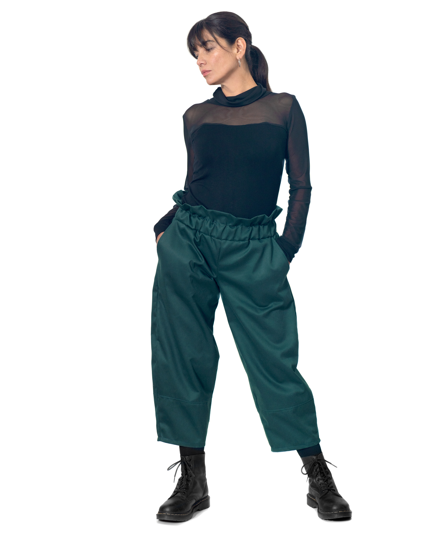 Pantalon largo midi, bolsillos diagonales y pretina arrepollada.