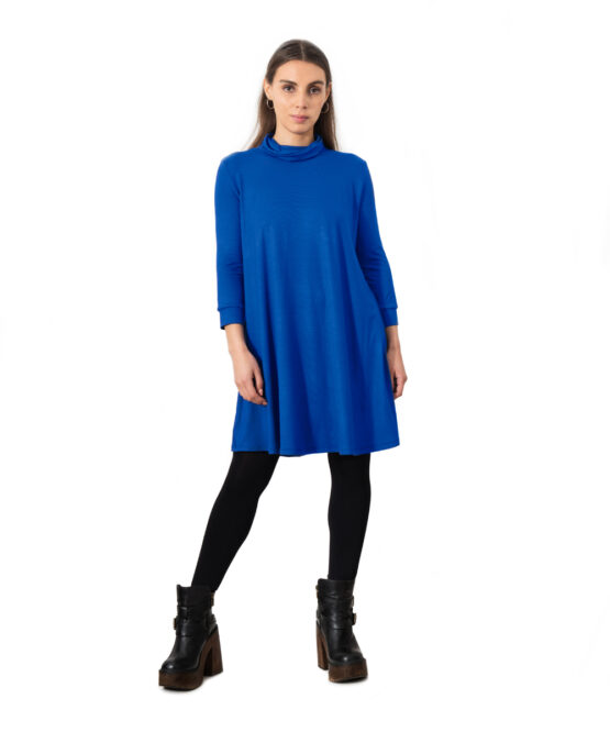 Vestido beatle a la rodilla, corte ancho recto y manga 3/4.