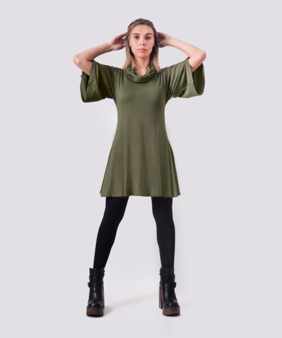 Vestido beatle evasé corto,manga kimono. En algodón modal liso. Tallas S M L XL.