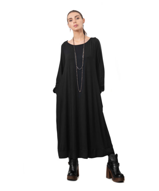 Vestido largo holgado con pretina y manga globo. En algodon modal.